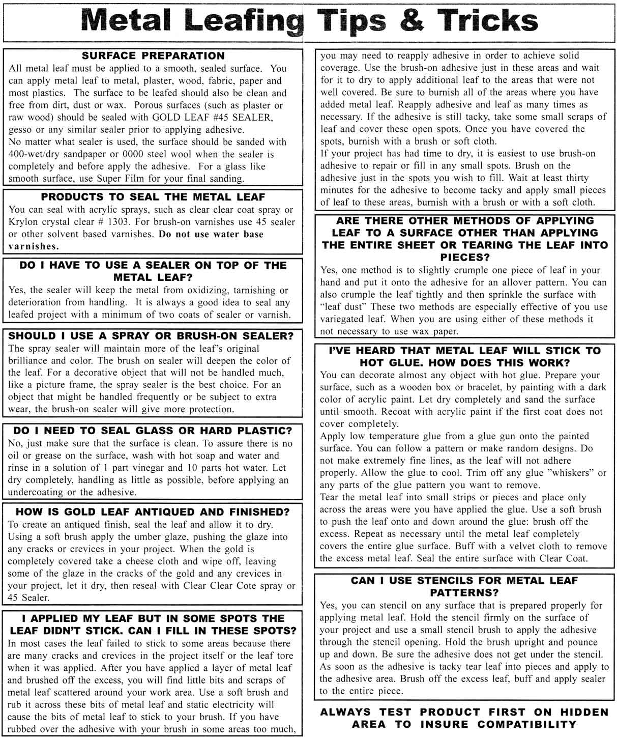 箔・メタルリーフの使用方法はこのチラシの下で紹介しています。