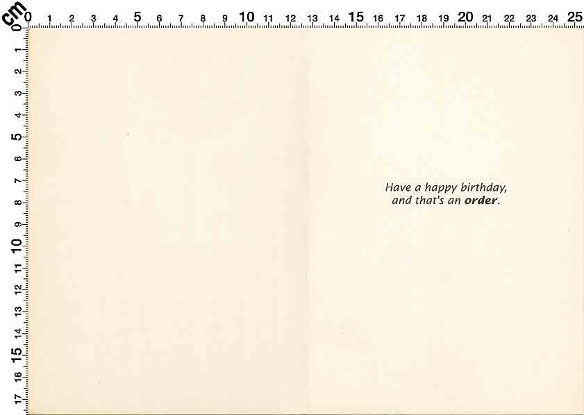 「Have a happy birthday, and that's an order.」 (誕生日おめでとう、これは命令だ) バッカスの巫女 アートライセンシングインターナショナル社提供 コピーライター:ルル・カナード