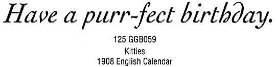 「Have a purr-fect birthday.」 素敵な誕生日を (「purr-fect」は猫の鳴き声「purr」と「perfect」を掛けた言葉遊び) Kitties English Calendar