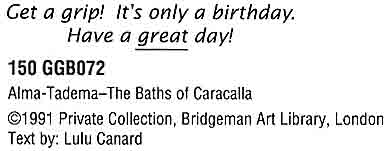 しっかりして!ただの誕生日だよ。素晴らしい一日を! アルマ=タデマ – カラカラ浴場 個人蔵、ブリッジマン・アート・ライブラリー、ロンドン テキスト: Lulu Canard