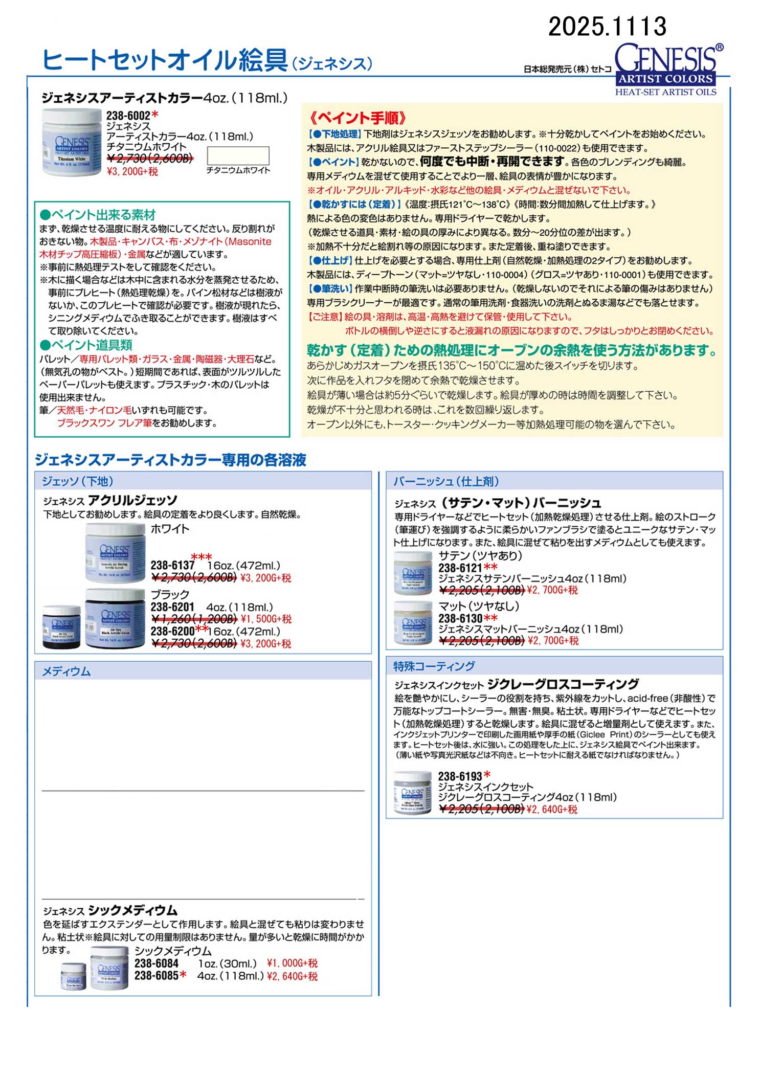 製造元、米国アマコ社にて当製品製造終了のため在庫限りとなります。※予告なく販売終了する場合がご ざいます。随時、ページを更新していただき、ご確認ください。 ジェネシスアーティストカラー《ヒートセットオイル》乾かない絵具滑らかできれいなブレンディング油絵具のように描ける毒性もなく無臭絵具-25 絵具-26 絵具-27