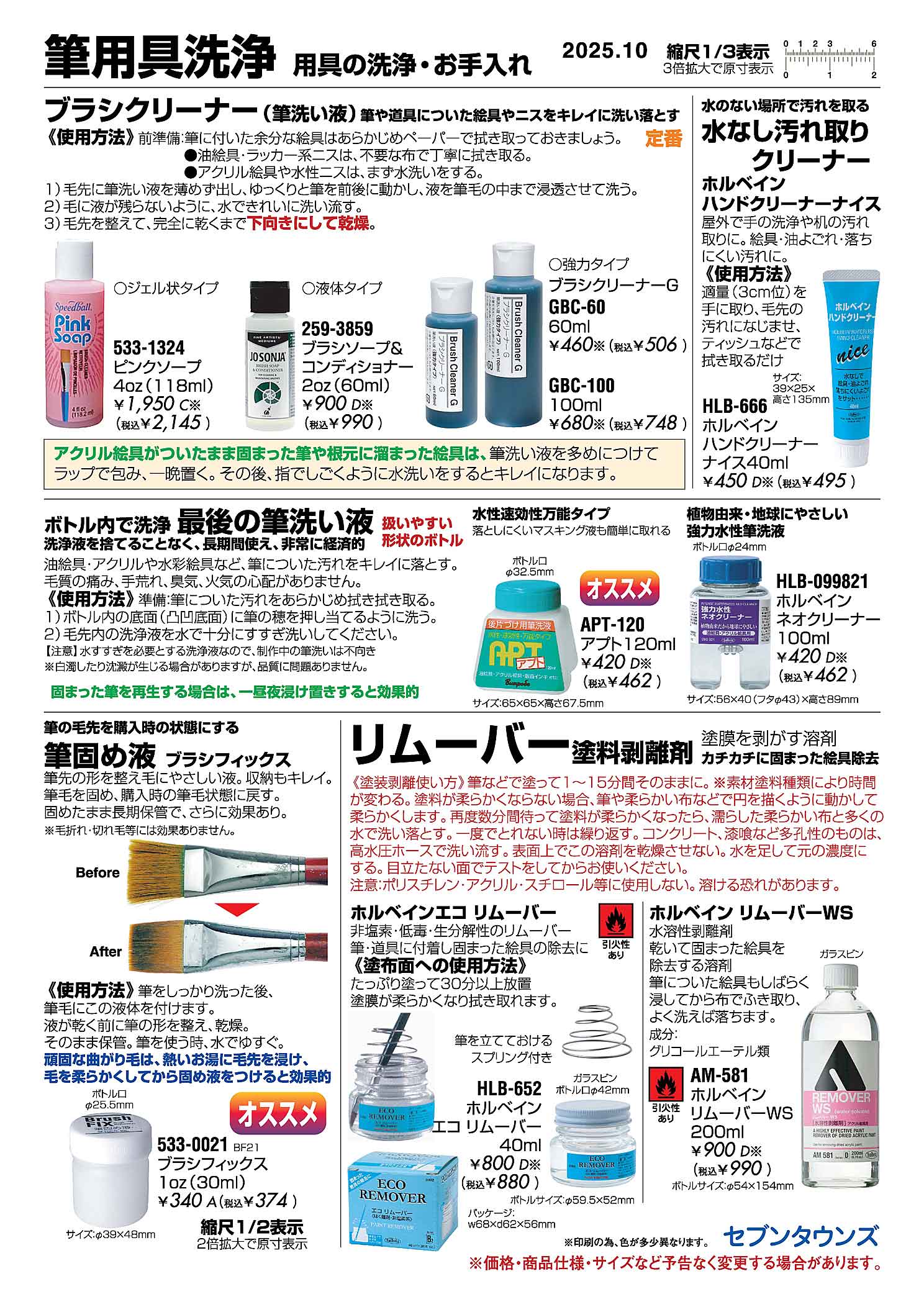 筆洗い液・筆固め液・はく離剤 各社商品値上げ告知がございます。 ※さらに、価格を変更する場合がございます。随時ページを更新していただき、ご確認ください。 cleaner20251024.jpg