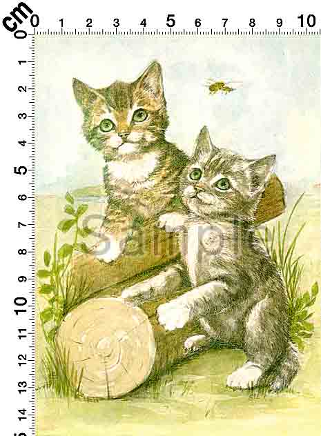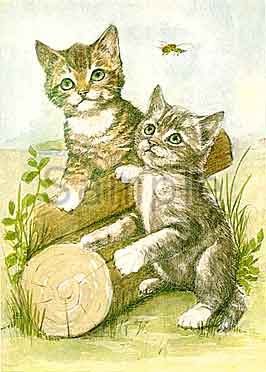 J. GUILLEMARD 2匹の子猫と1匹のミツバチ
