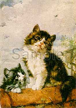 ユリウス・アダム (1852-1913) 壁の上の2匹の子猫
