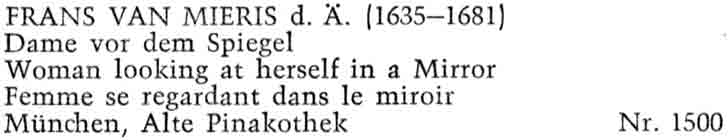 フランス・ファン・ミーリス(1635-1681) 鏡の前の女性 ミュンヘン、アルテ・ピナコテーク