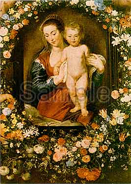 P. P. ルーベンス (1577-1640) 抜粋元: マリアと薔薇のロザリオ 詳細: 薔薇のガーランドの中の聖母子 ミュンヘン、バイエルン州立絵画コレクション