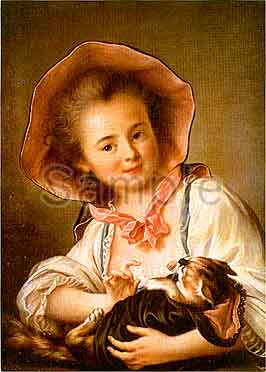 フランソワ=ユベール・ドルーエ (1727-1775) 猫を連れた少女