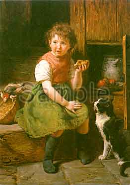 フェリックス・シュレジンガー (1833-1910) 猫と少女 ガレリエ・ウンガー(ミュンヘン)