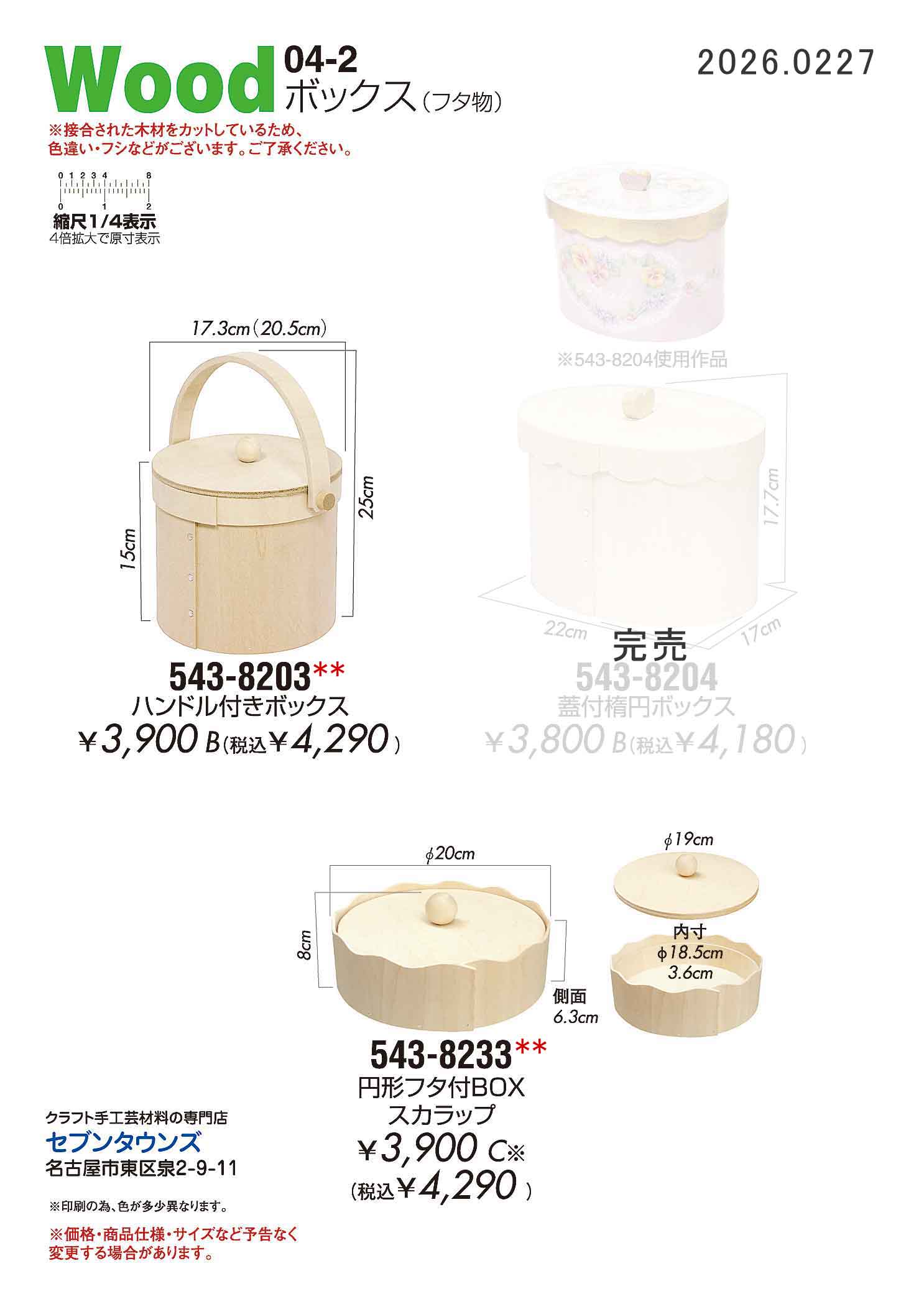 WOOD04-2 ボックス(フタ物) 商品が値上がりしております。順次価格変更いたします。 ※予告なく、価格を変更する場合がございます。随時、ページを更新していただき、ご確認ください。 543-8203、、 543-8233、