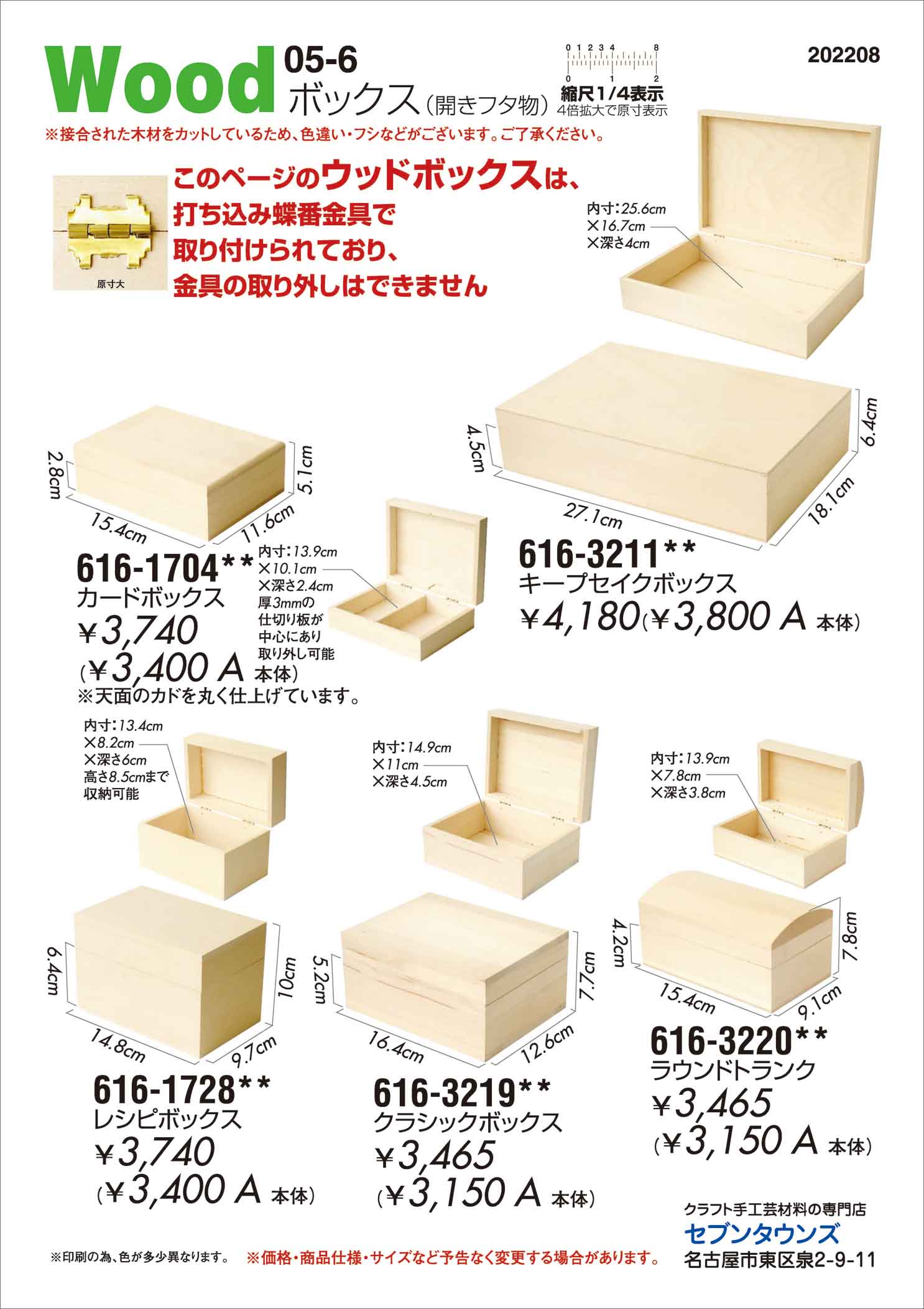 A素材WOOD05-6 ボックス(開きフタ物) 616-1704、616-3211、 616-1728、616-3219、616-3220、