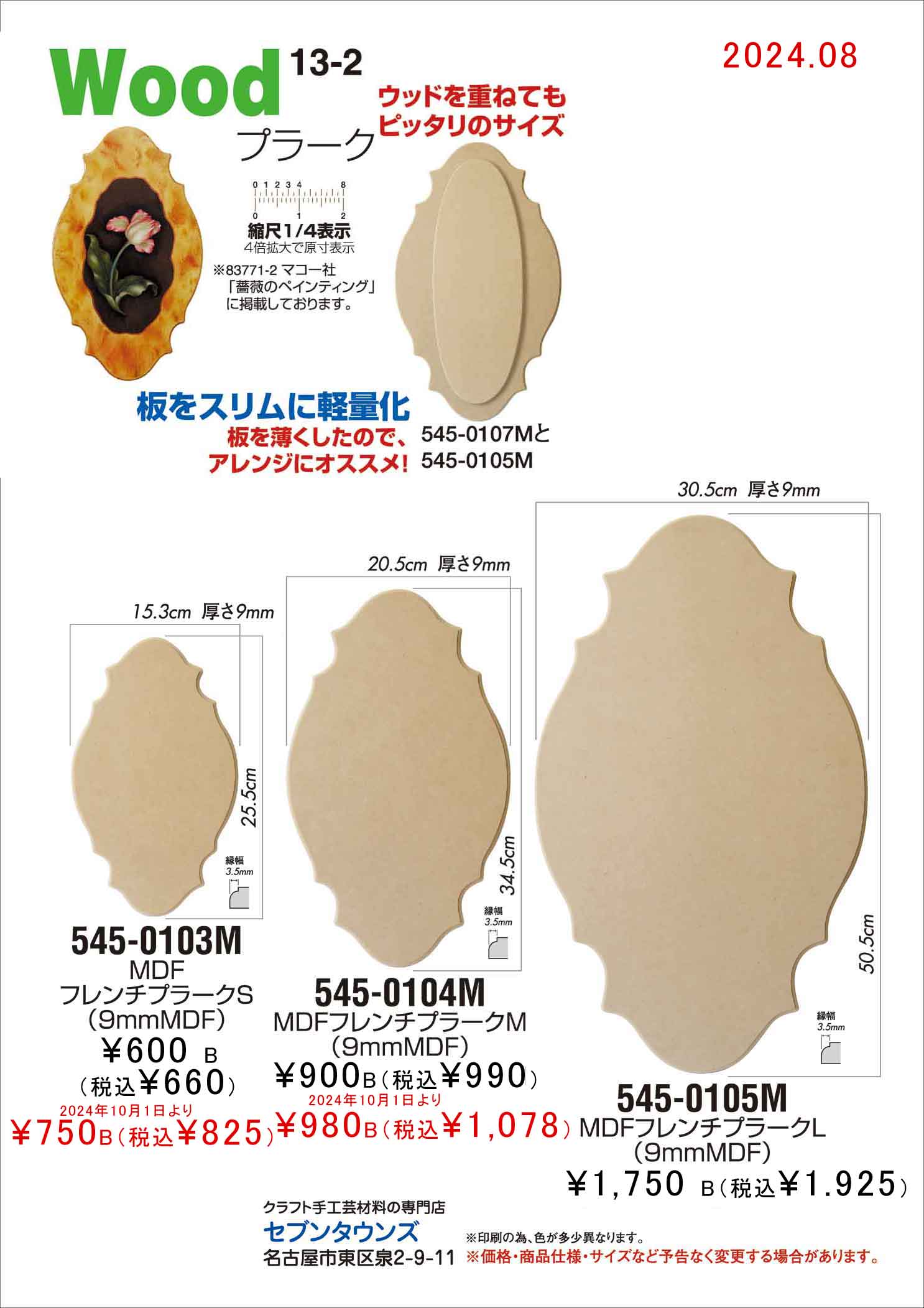 WOOD-13-2 プラーク 545-0105M MDFフレンチプラークL¥1,925(¥1,750 B本体)に価格変更しております。 545-0103M、545-0104M、も今後価格変更予定です。ご了承ください。 ※価格を変更する場合がございます。随時、ページを更新していただき、ご確認ください。 545-0103M、545-0104M、545-0105M