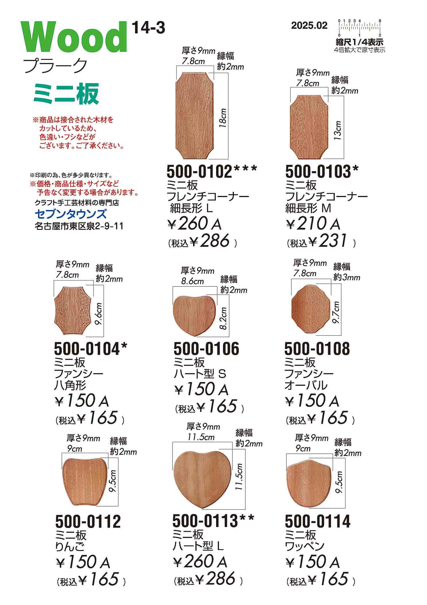 WOOD-14-3 プラーク ミニ板(樹種アガチス使用) 500-0102、500-0103、 500-0104、500-0106、500-0108、 500-0112、500-0113、500-0114、