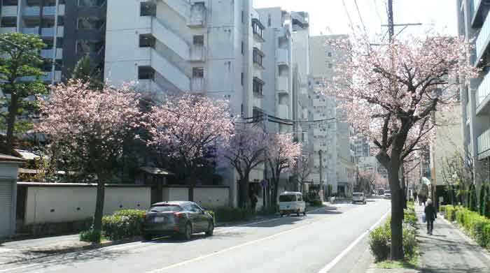 ![]() 過去の桜並木画像2020.3.11、朝9時ごろの撮影 2022年冬の枝大伐採があり、ここまで伸び広がってはおりません |
