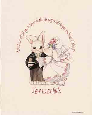 Love bears all things, believes all things, hopes all things, endures all things. 愛はすべてに耐え、すべてを信じ、すべてを望み、すべてを忍耐する。 Love never fails 聖書の一節である「愛は決して滅びない 」という言葉