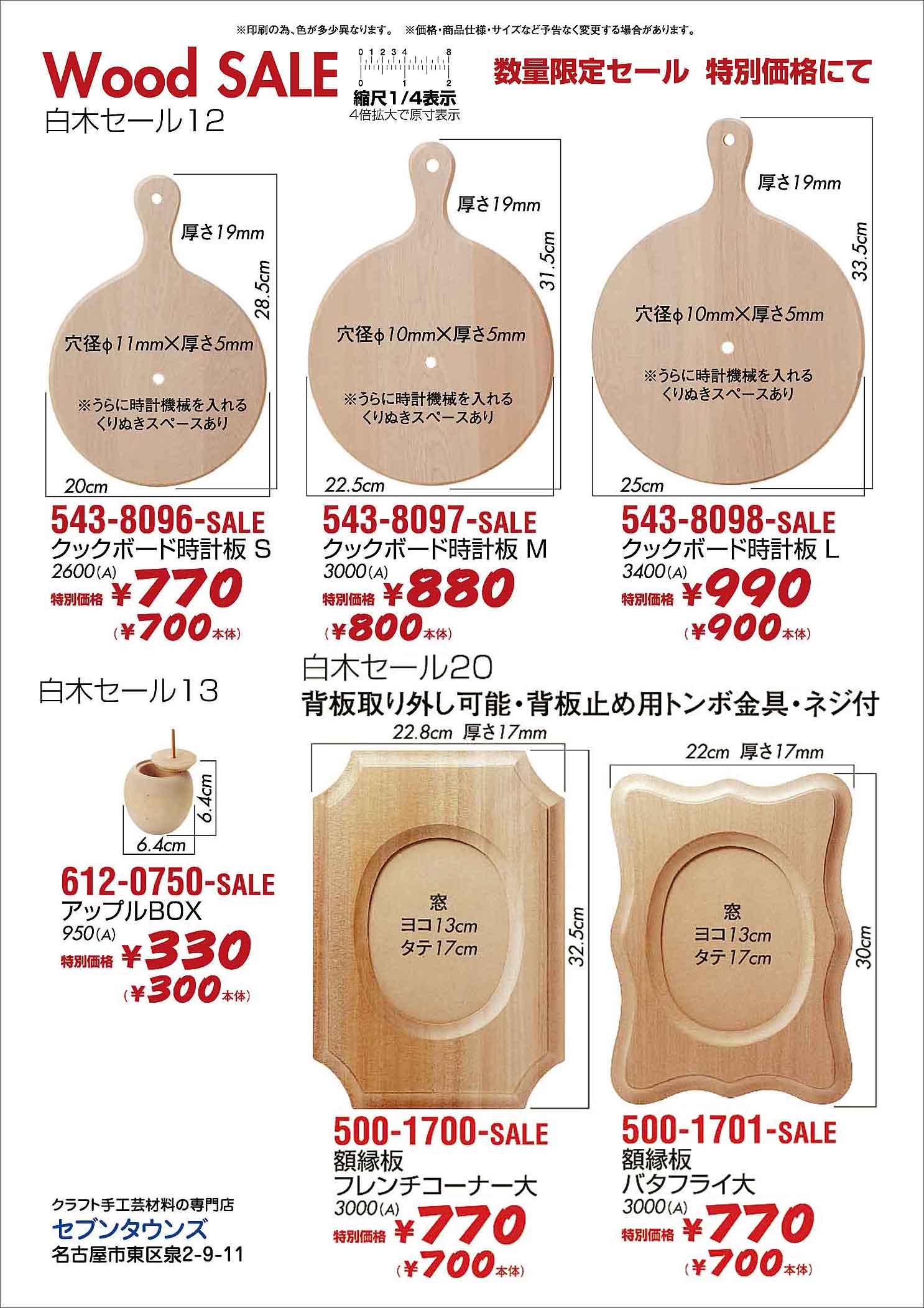 白木セール20、500-1700、500-1701、