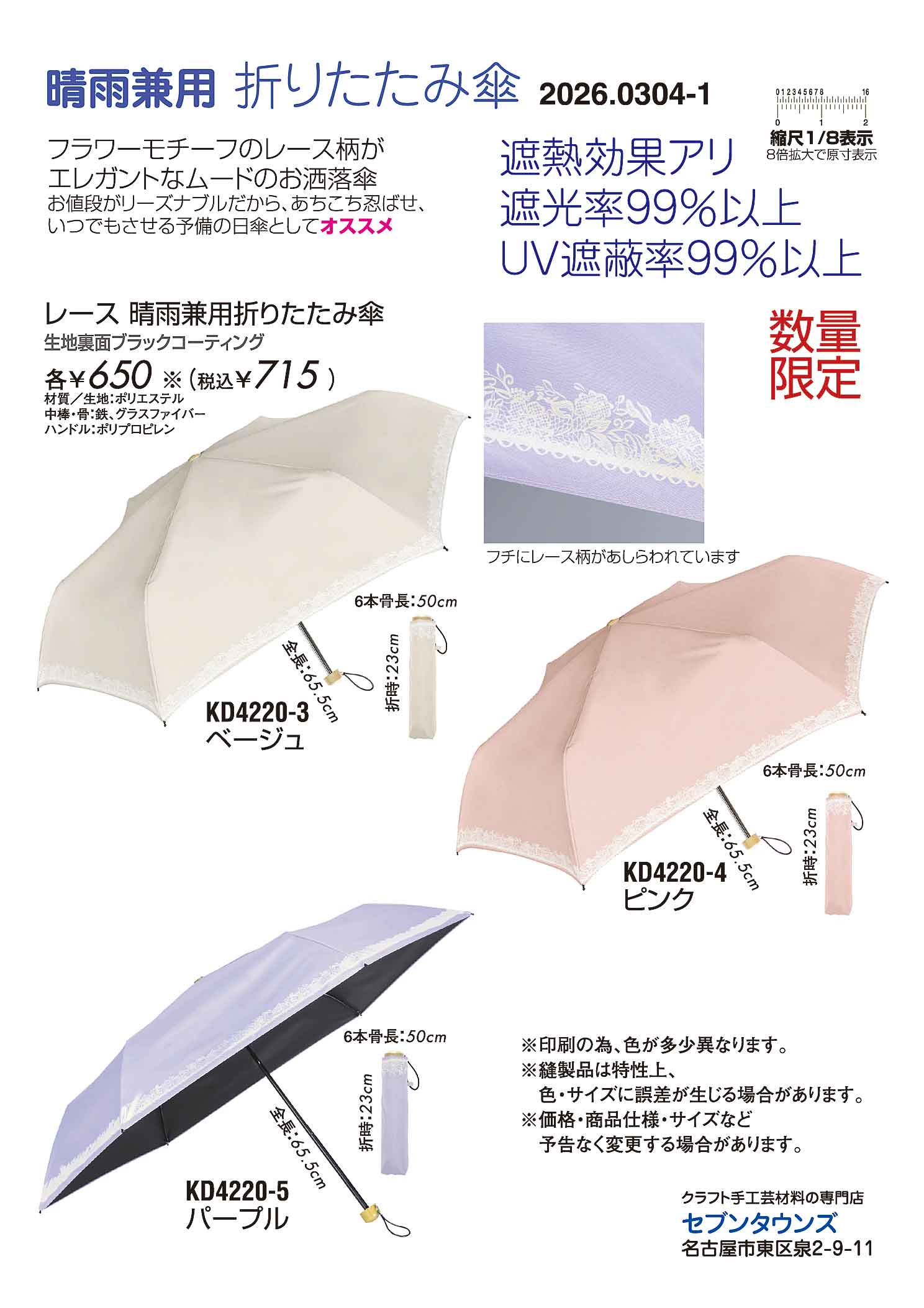 レース晴雨兼用折りたたみ傘KD4220-3、KD4220-4、KD4220-5、